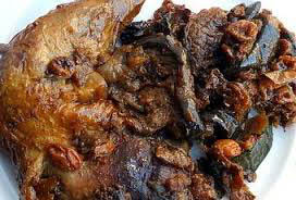 Lorsque les oignons sont dorés, mettre les pois chiches égouttés (préalablement trempés), les pommes de terre, le poulet et les oeufs, couvrir d'eau, ajouter sel et poivre, 1 pincée de safran.